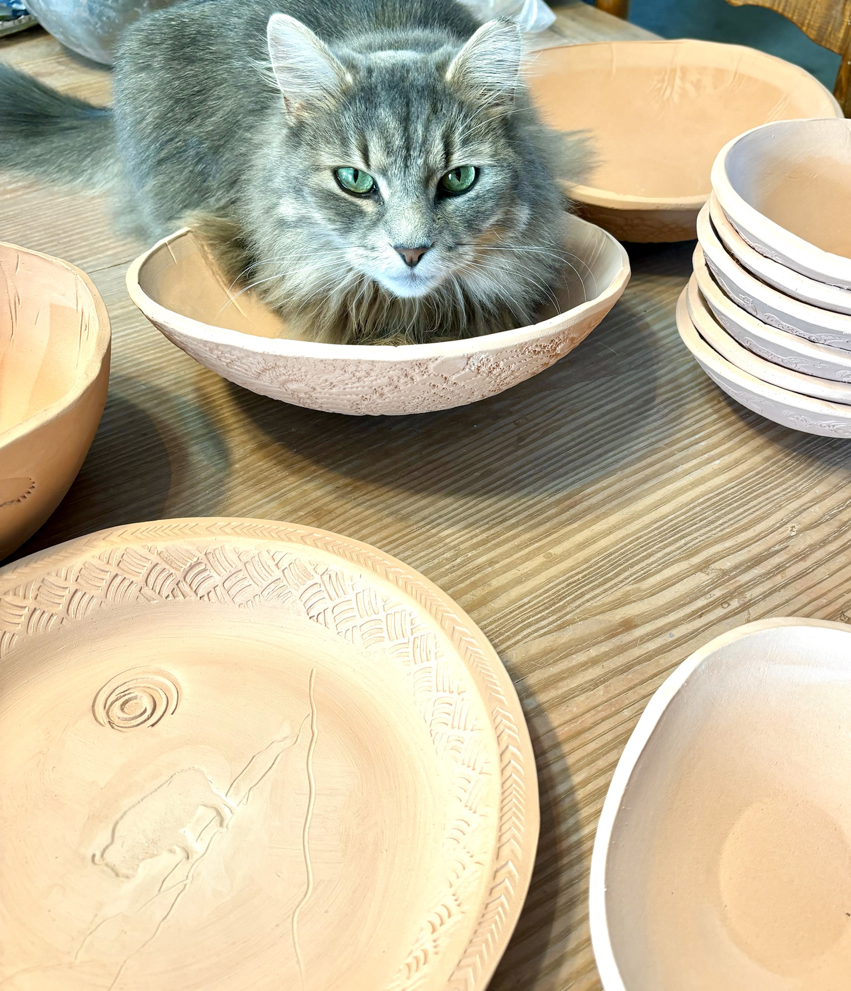 Cats Eye Studio is a place of daily transition and creation. This page is designed to show you how pottery is created here.